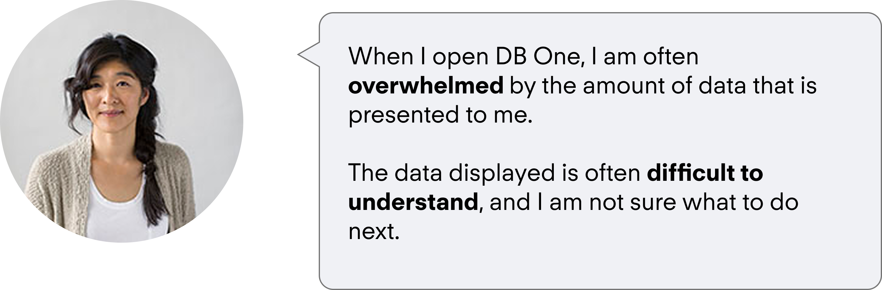 To better investigate our problem, we had to consult with our personas, and understand our user deeply. As you can see, she often struggles with understanding the information, and needs a new way to consume this information. To be able to solve her problem, we need to be able to create an effective problem statement.