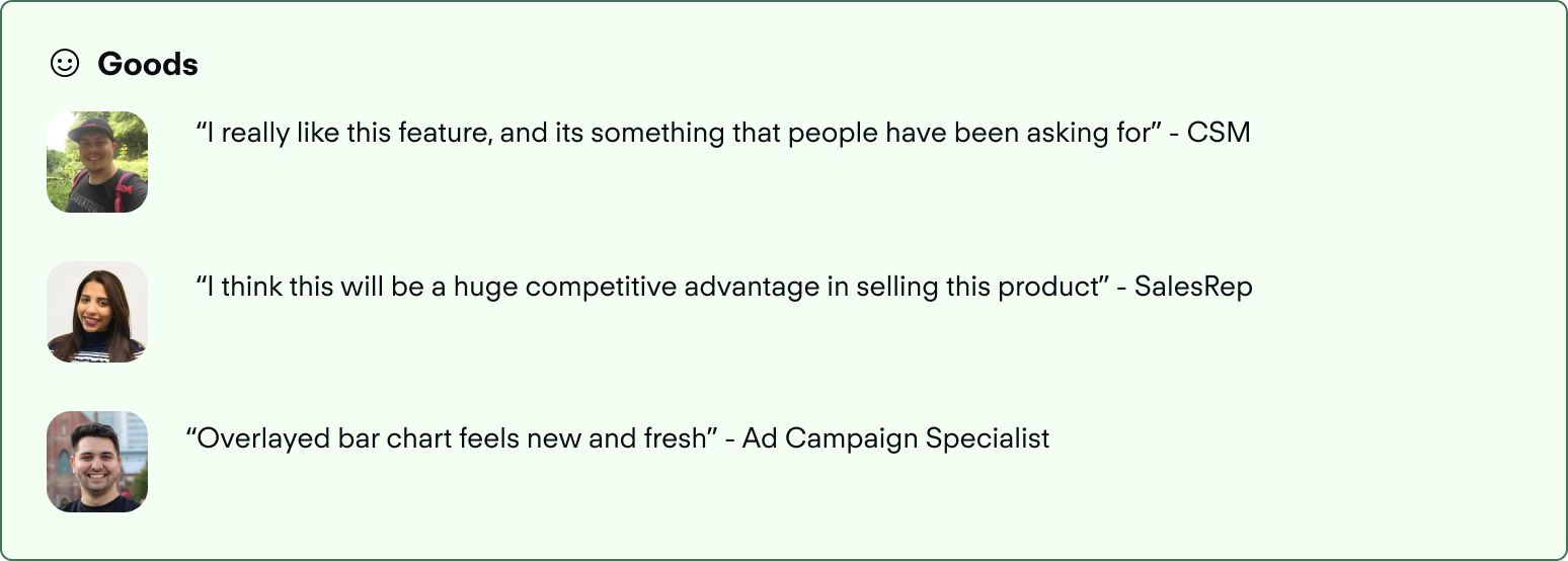 I moved towards testing this pattern with a group of internal users, varying in expertise with the product. (N=7). This was done with a UX Researcher through moderated sessions on zoom, and recorded in dovetail. Some of the key insights, as extracted from testing: