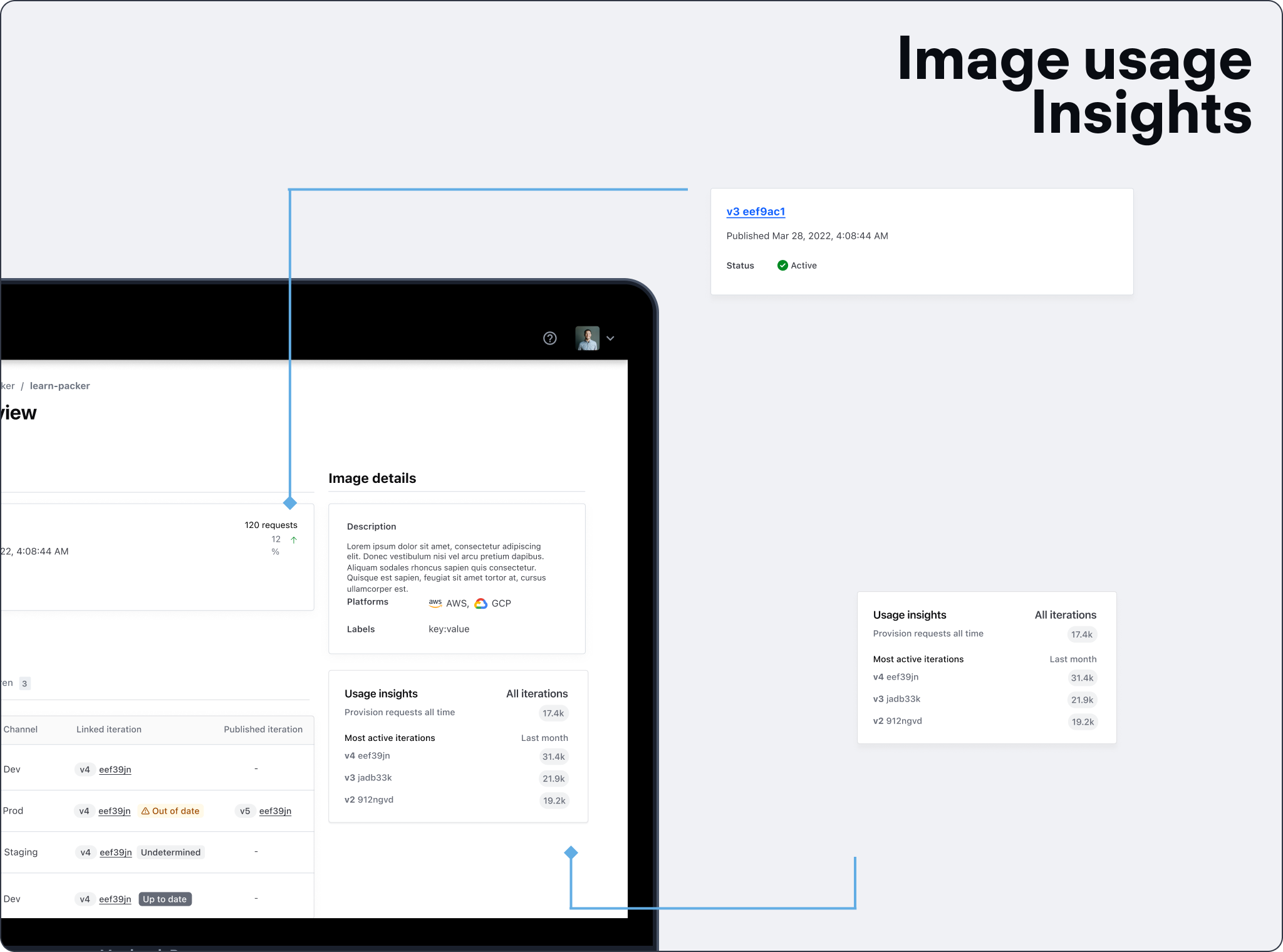There was a general understanding from existing customer feedback that they lacked actionable data to inform them of how their iterations were being used. Often these metrics would help inform when and how an image's general software lifecycle would fare.