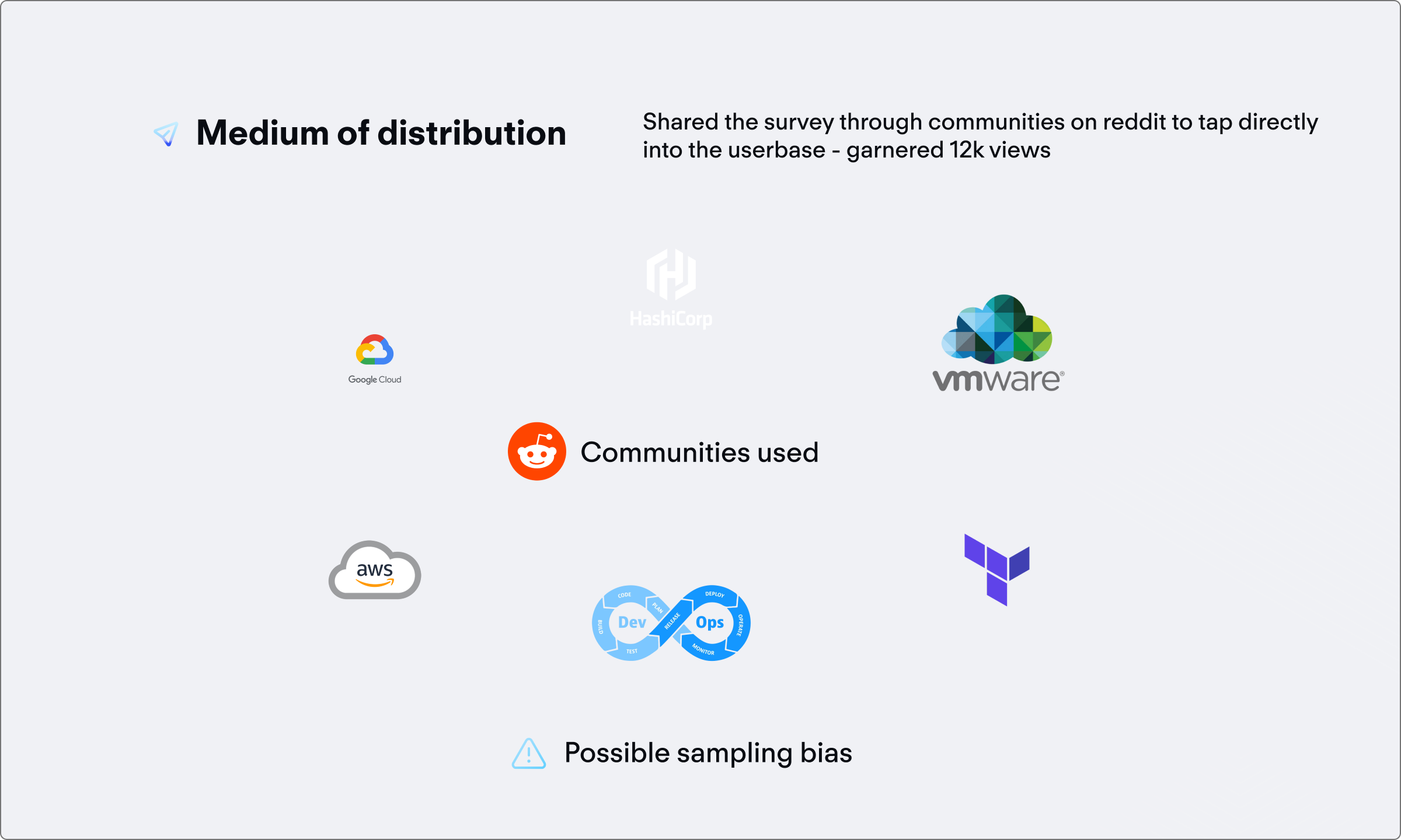 Our team had a quick timeline, and needed a rapid research method that could quickly get over a critical sample size which we determined to be roughly over N=50, considering our user base. To meet this, we decided to take advantage of HashiCorp’s rich open source community, and use Reddit to source participants.