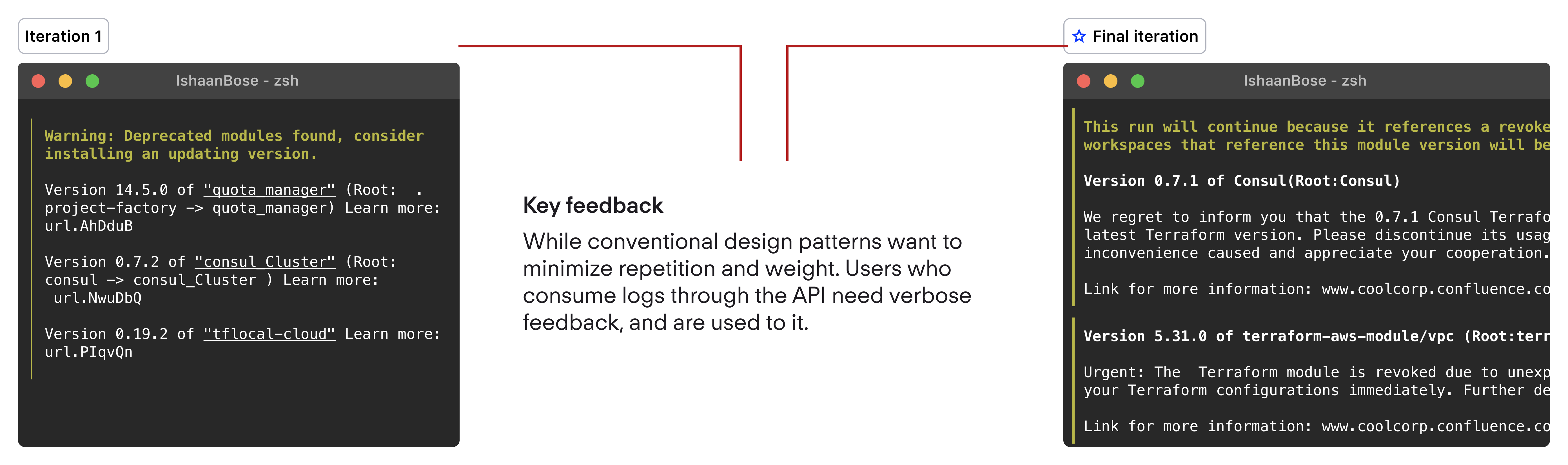 Decision: Use verbose messaging in the CLI, and summarized in the UI