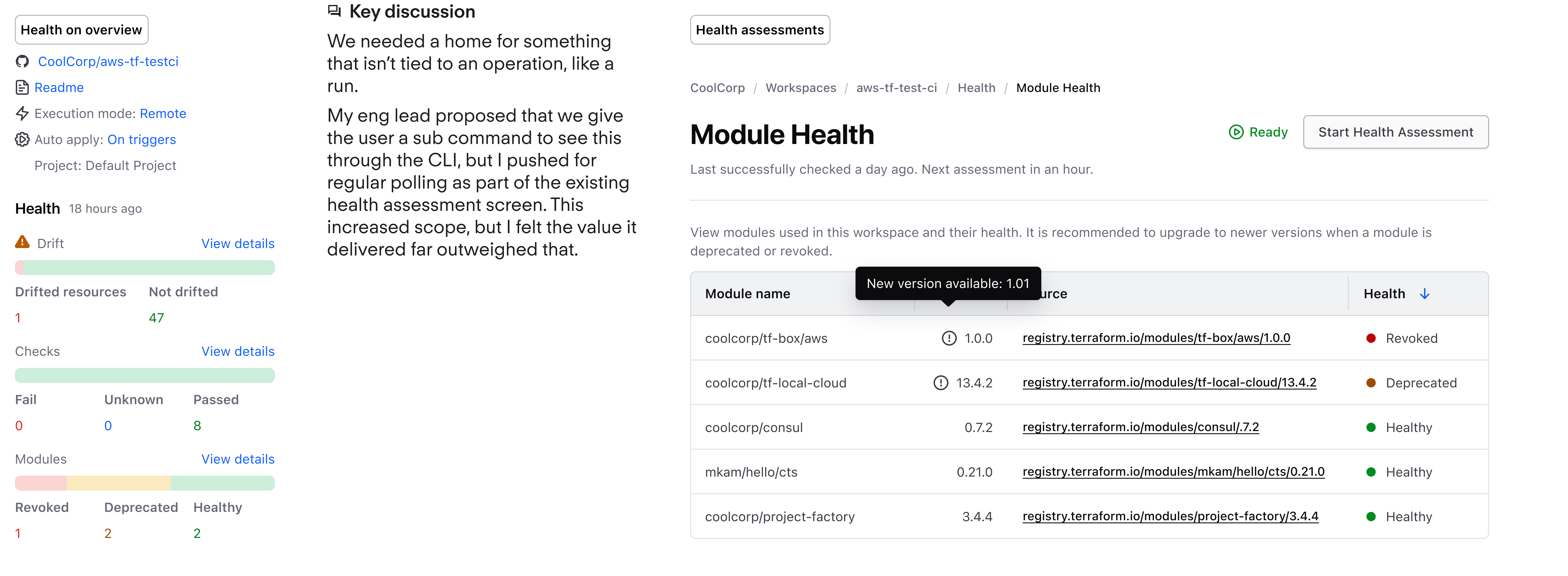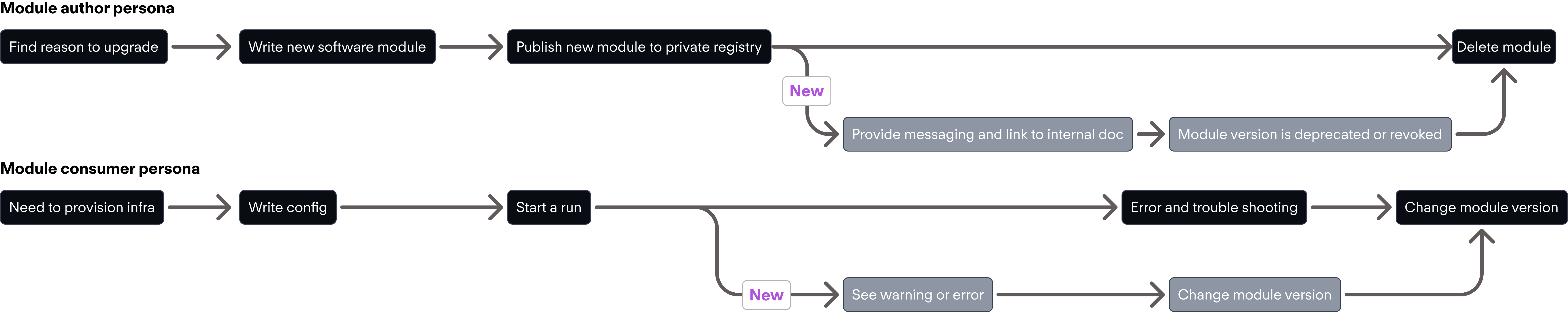 Terraform modules, like any software, evolve through versioning (think iOS 17 to 18). Organizations release new versions to address security, bugs, and improvements. The challenge is getting users to upgrade—different roles and skill levels create gaps in how people experience these updates.