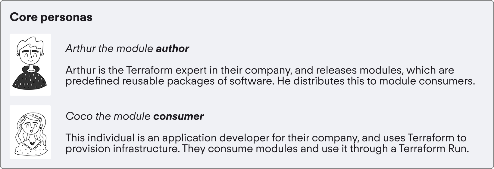 From here it was clear that we needed to build something within Terraform to help this core persona of the module author. To help understand how to create a solution we had to decompose the problem a little bit more.
