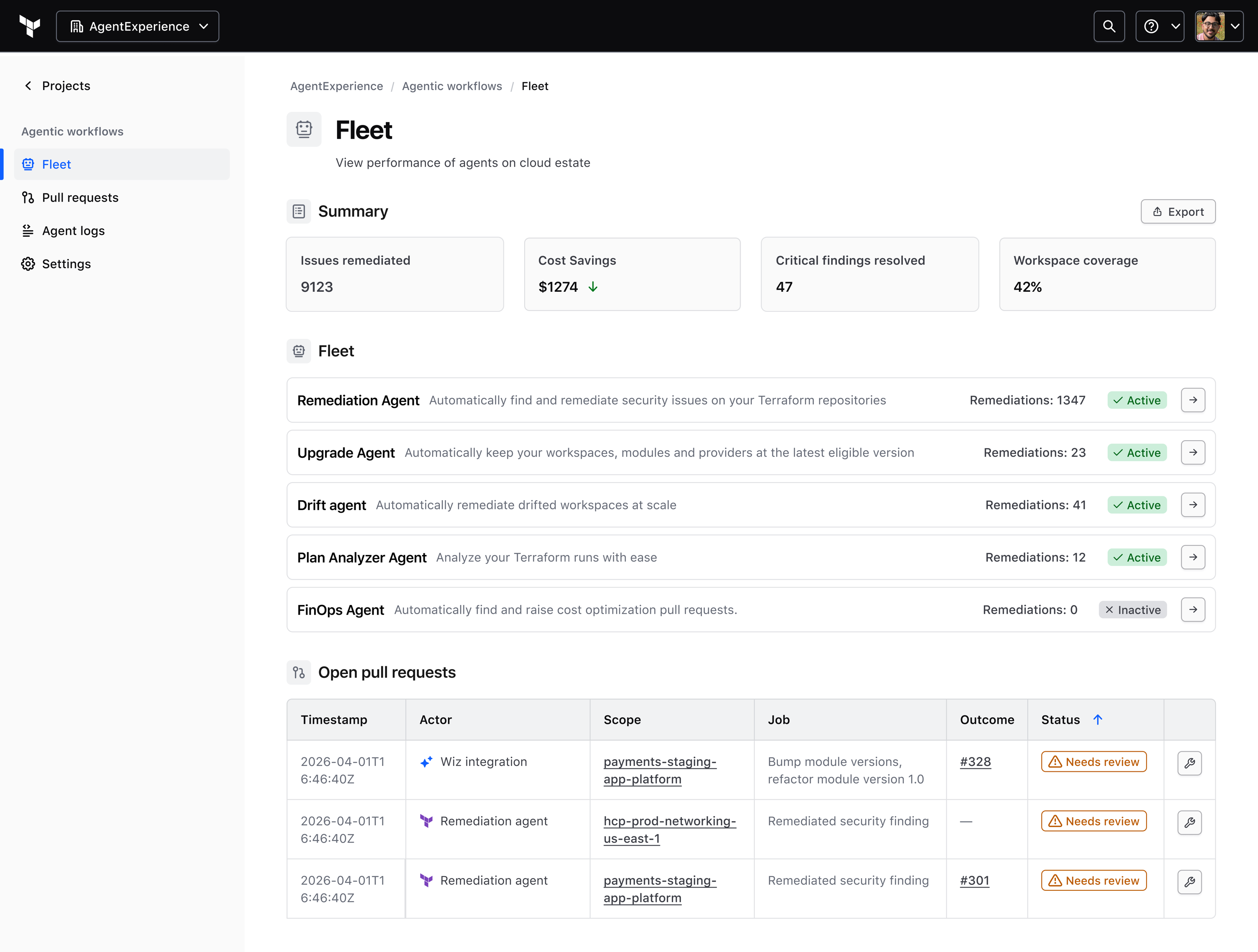 This sat within HashiCorp's broader agentic exploration. HCP Terraform was already where infrastructure changes were planned and applied — if it could safely generate and write fixes back to source control, the same pattern could extend to security, cost, upgrades, and other maintenance work.