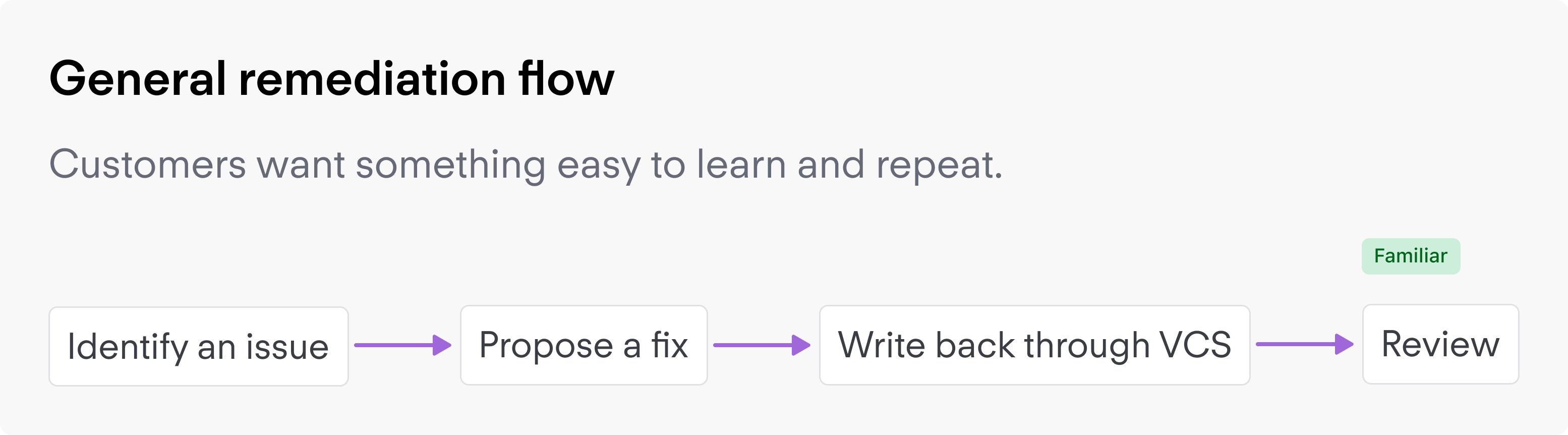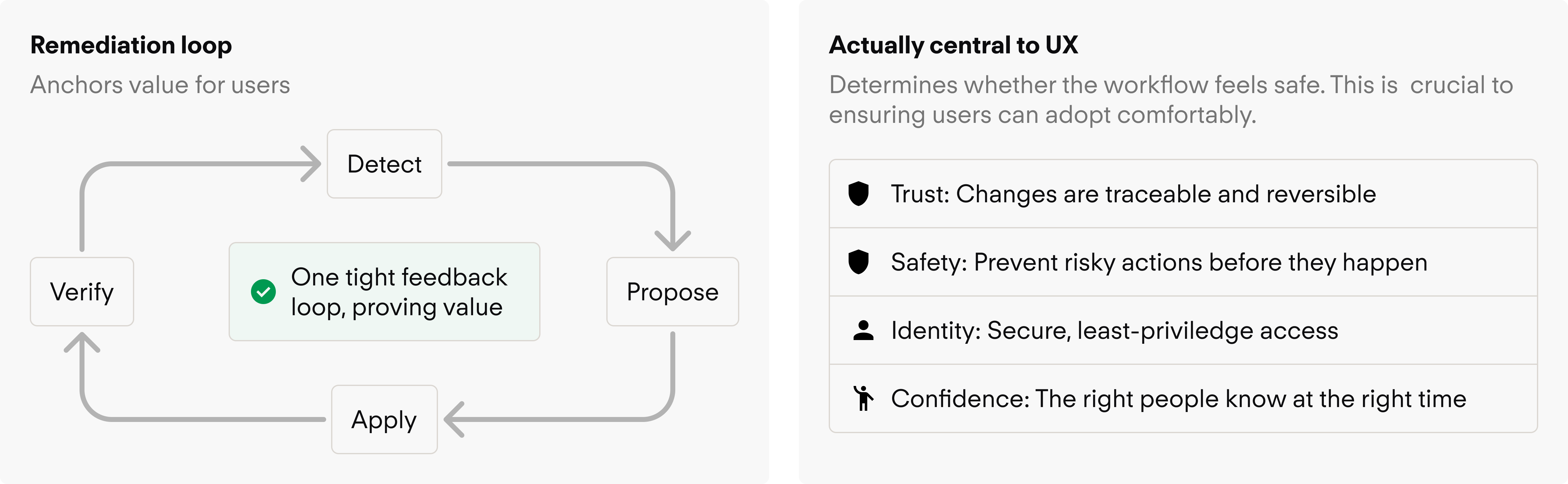 The clearest outcome was a sharper private-beta direction. The team moved from a broad agentic concept toward a narrower remediation workflow built around proactive scanning, generated PRs, and reusable write-back patterns. The design work also made trust requirements explicit: confidence, blast radius, history, and explainability were not side features; they were part of the MVP.