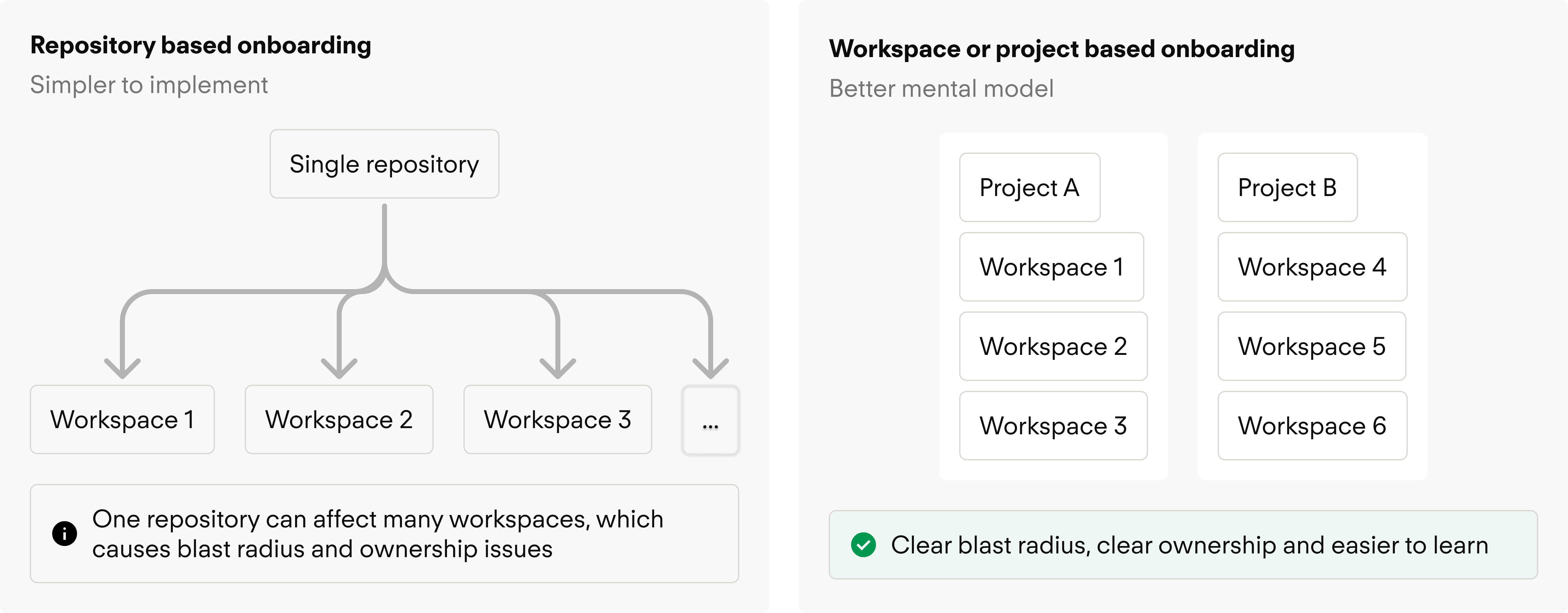 Challenge: Repo-based onboarding was technically simpler, but obscured blast radius and ownership, especially in monorepos and shared-module setups.