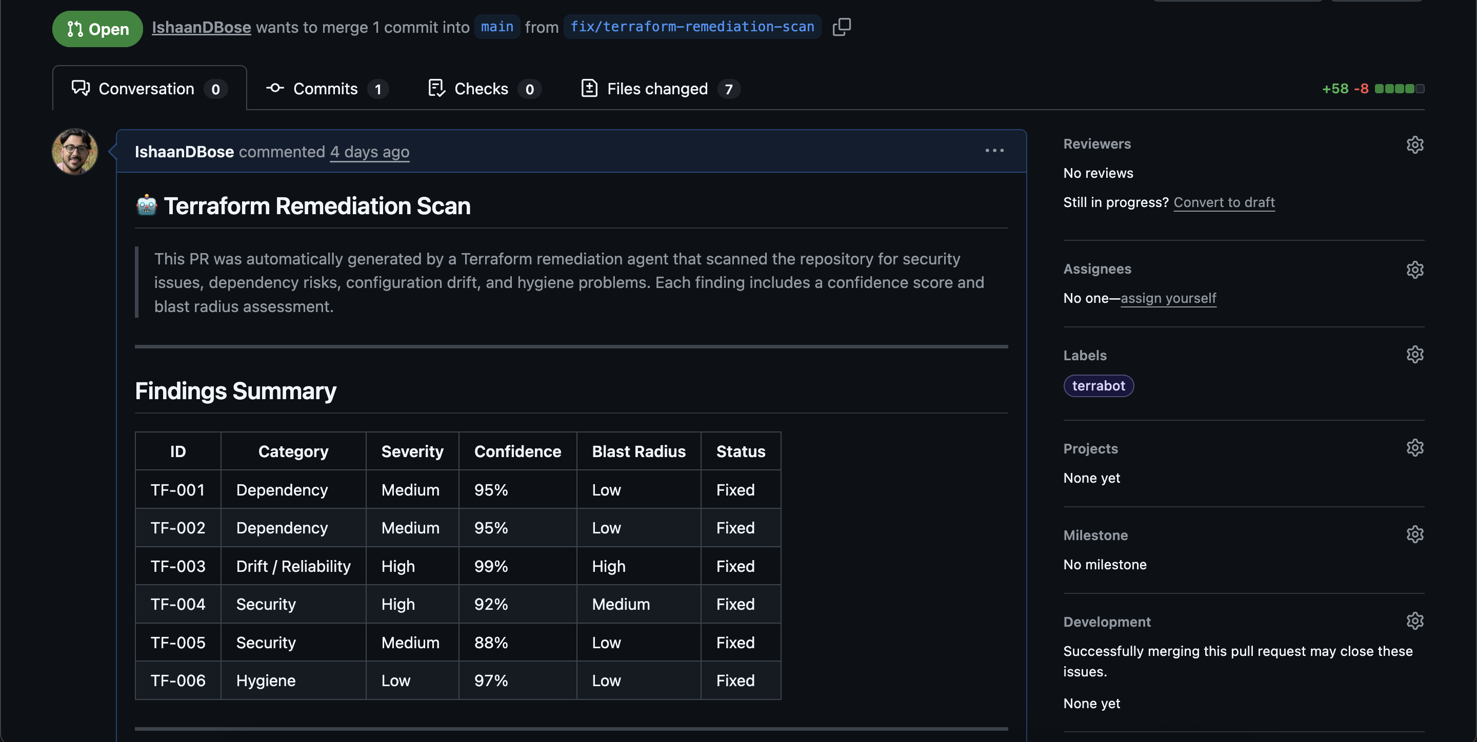 Detection wasn't the bottleneck — Teams already had signals from security and cost tools. What they lacked was a low-friction path from issue detection to a reviewable code change.