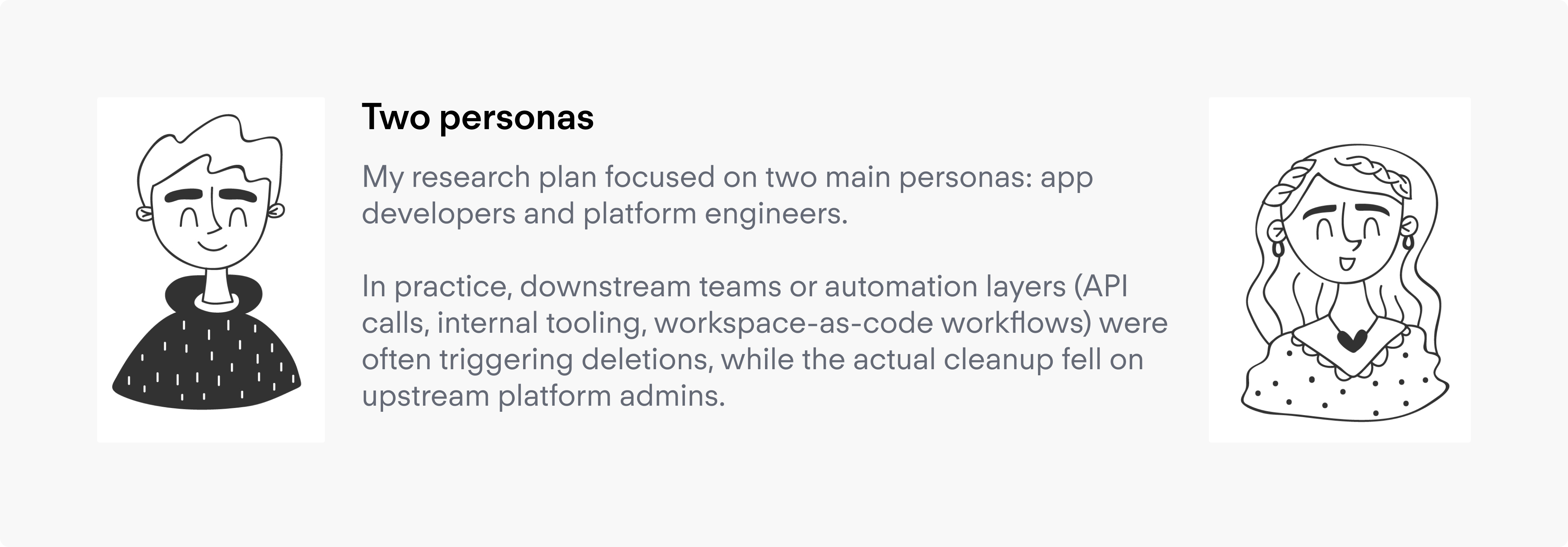 By the end of the project, the team had aligned on an in-product recovery concept scoped around accidentally deleted workspaces and stacks, organization-level access, a 30-day retention window, and a recovery run that restores the workspace "as if it were never deleted."