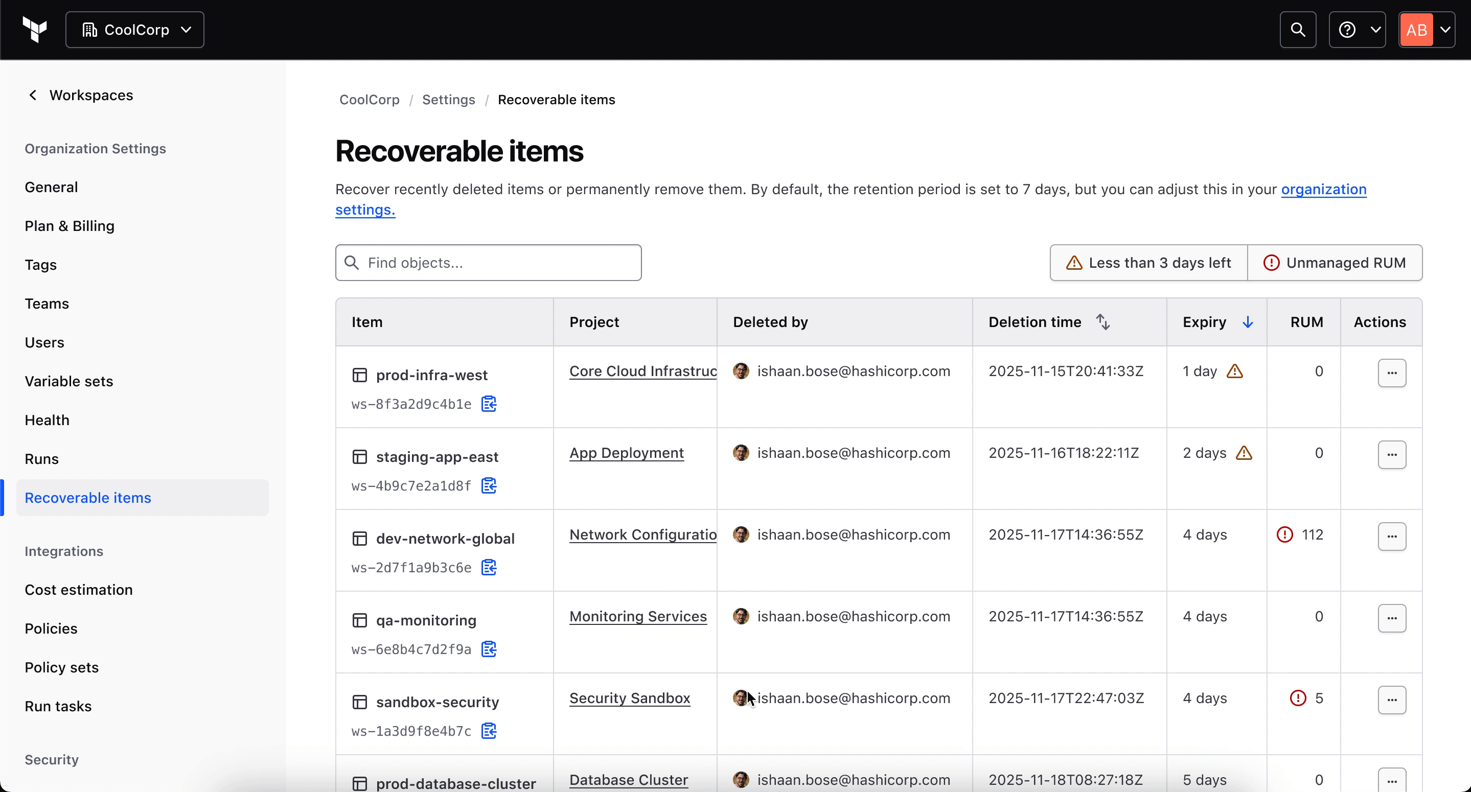 Challenge: Recovery could logically live at workspace, project, or organization level. Duplicating it across views would create inconsistency and fragment the experience.