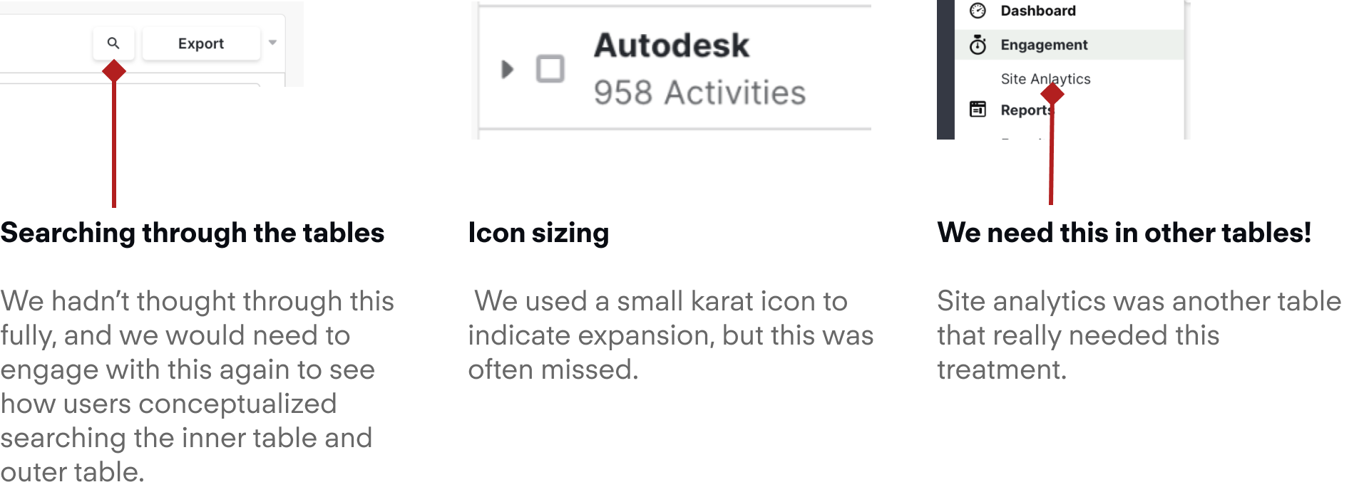 A followup on this project that would be a v2 improvement would be to see how we could adapt this table to new areas within the product. It is important to stay pragmatic and not apply the component willy nilly, but to still think of where we can make things more efficient.